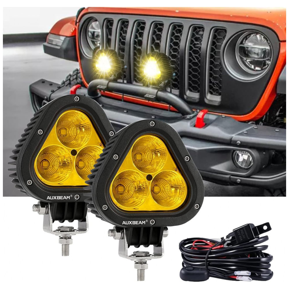 Chip 5050 de alta intensidade: Comparado com o chip 3535 comum, a luz LED off road Auxbeam tem 90 W, par 5050 chips LED, 9000lm, par e luz amarela fria de 4300k. O excelente desempenho iluminará tudo o que você precisa ver