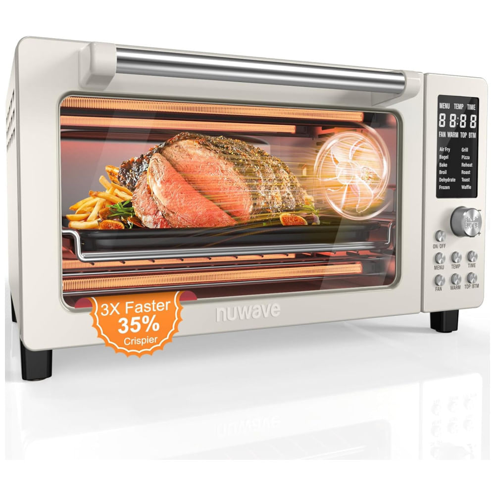 O Forno Elétrico e Fritadeira de Ar Nuwave Bravo Pro Premium foi desenvolvido para proporcionar uma experiência de cozimento mais rápida e eficiente. Com ventilação 100 vezes mais rápida do que os modelos convencionais, ele garante resultados mais crocantes e dourados de maneira irresistível. Utilizando o sistema de convecção UltraFast, atualizado em 2024, combinado com elementos de aquecimento superior e inferior, o Bravo Pro oferece o dobro de uniformidade e eficiência em comparação com outras marcas do mercado.