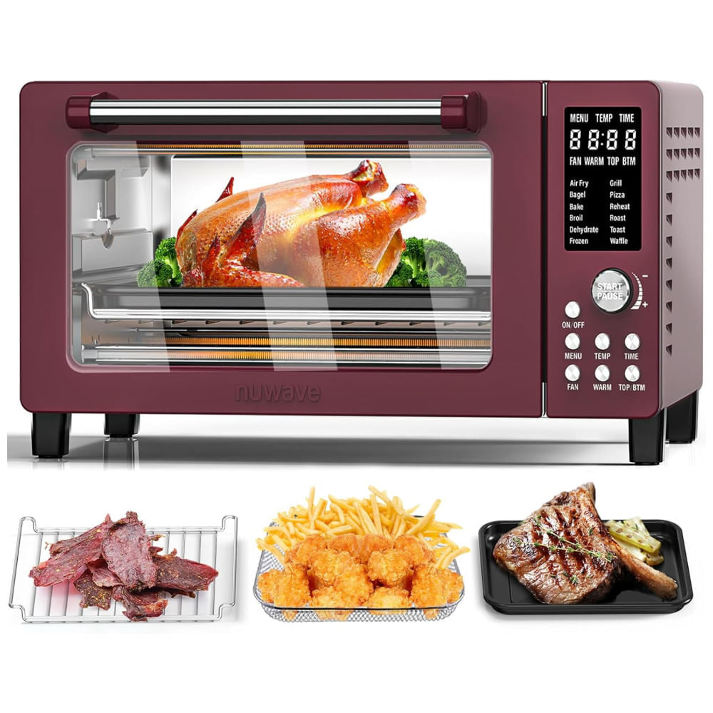 Este forno elétrico premium de 1800 watts e Air Fryer oferece 12 funções, incluindo: Air Fry, Air Roast, Grill, Assar, Tostar, Bagel, Desidratar, Reaquecer, Congelar, Waffle, Pizza e Manter Aquecido. Tudo isso em um único aparelho potente de 1800 watts.