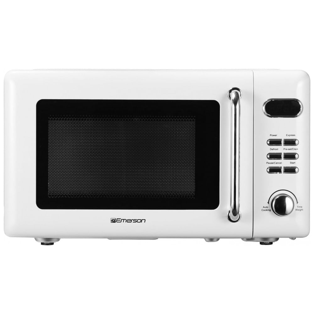 Atenção: Todos os produtos elétricos são 110V e necessitam de adaptador para a tomada no formato Brasileiro. O forno micro-ondas retrô Emerson MWR7020W é um modelo compacto de bancada com capacidade aproximada de 20 litros, indicado para uso residencial em aquecimento, preparo rápido de refeições e descongelamento de alimentos. Com potência de 700W e 5 níveis de potência, permite selecionar a intensidade adequada para diferentes tipos de alimentos, contribuindo para um aquecimento mais uniforme com apoio do prato giratório de vidro.?? O painel de controle por botões com display LED reúne funções de timer, relógio digital e teclas dedicadas para programas automáticos, facilitando a operação diária. O equipamento oferece 8 programas pré-configurados para itens como pipoca, batata, pizza, vegetais congelados, bebidas e pratos prontos, reduzindo a necessidade de ajustes manuais de tempo e potência.?? A função de descongelamento ajusta o tempo de exposição às micro-ondas para atuar em alimentos congelados, enquanto a função express permite iniciar ciclos rápidos com poucos comandos. A trava de segurança infantil bloqueia o painel para evitar acionamentos acidentais, tornando o aparelho mais adequado para ambientes com crianças.?? O design retrô em cor Thunderbird Blue com puxador e botão cromados foi desenvolvido para compor bancadas de cozinhas que valorizam estética clássica, mantendo dimensões externas compactas. A cavidade interna comporta pratos de refeição padrão apoiados em prato giratório de vidro com diâmetro de cerca de 26,7 cm, permitindo o uso em rotinas de refeições diárias.?? A instalação é do tipo plug-in, com alimentação elétrica em 110V e frequência de operação de 2,45 GHz, compatível com redes domésticas que sigam essa tensão. O corpo metálico com interior em vidro facilita a limpeza após o uso, enquanto o prato giratório removível pode ser retirado para higienização separada.?? Ficha Técnica: Marca: Emerson? Fabricante: Emerson? Modelo: MWR7020W (linha Retro Compact Countertop Microwave Oven)? Tipo de produto: Forno micro-ondas de bancada compacto retrô?? Uso recomendado: Residencial? Cor: Branco Capacidade interna: 20L Potência de saída: 700W?? Níveis de potência: 5 níveis?? Alimentação: Elétrica? Voltagem: 110V? Frequência de operação: 2,45 GHz? Método de aquecimento: Micro-ondas por radiação eletromagnética? Tipo de controle: Botões (button control / touch control)?? Interface do usuário: Display LED com relógio digital?? Funções principais: Aquecimento, cozimento rápido, descongelamento, timer?? Timer: Função de timer disponível no painel? Programas automáticos: 8 programas pré-definidos (incluindo pipoca, batata, pizza, vegetais congelados, bebida, prato pronto)?? Funções adicionais: Função express, função de descongelamento, teclas de atalho?? Trava de segurança infantil: Sim (Child Safety Lock)?? Prato giratório: Vidro, removível?? Diâmetro do prato giratório: 26,7 cm Material principal: Gabinete metálico com prato giratório de vidro?? Material interno: Vidro? Instalação: De bancada, plug-in? Dimensões do produto (L x P x A): 49,5 cm x 36,2 cm x 29,5 cm (convertido de 19,5" x 14,25" x 11,63")? Peso do produto: 10,7 kg Peso do pacote (produto + embalagem): 11,5 kg Conteúdo da embalagem: 1 forno micro-ondas Emerson MWR7020W, 1 prato giratório de vidro removível, 1 manual do usuário? Manual do usuário: Idioma inglês?