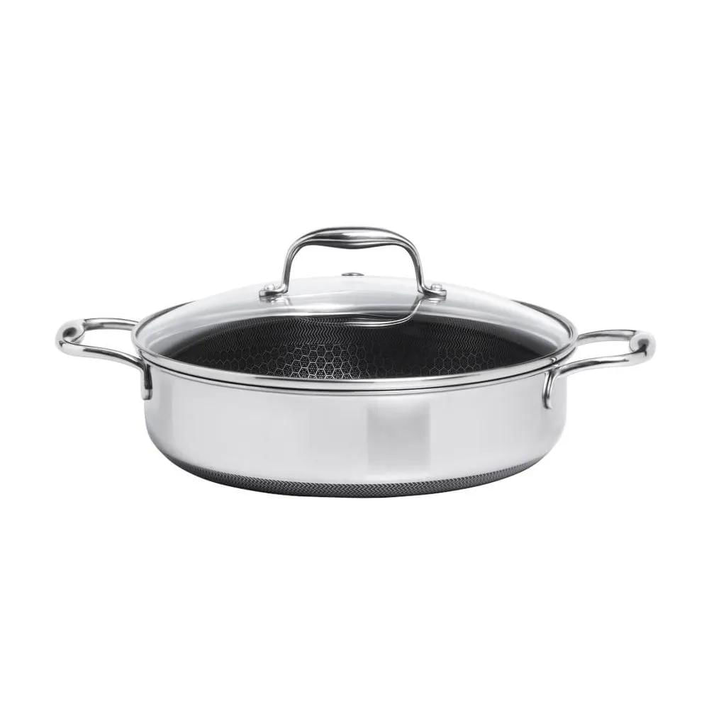 Para uma cozinha bem equipada, a Frigideira Reta CookingPro Hive é a escolha ideal. Este utensílio de alta performance une tecnologia e design, permitindo preparos incríveis. Sua estrutura tripla garante um aquecimento rápido e uniforme, enquanto a inovadora micromalha 100% em aço inox protege o revestimento antiaderente, tornando-a antirrisco. Essa combinação permite o uso de menos óleo e garante maior controle de temperatura, facilitando o preparo e a limpeza.