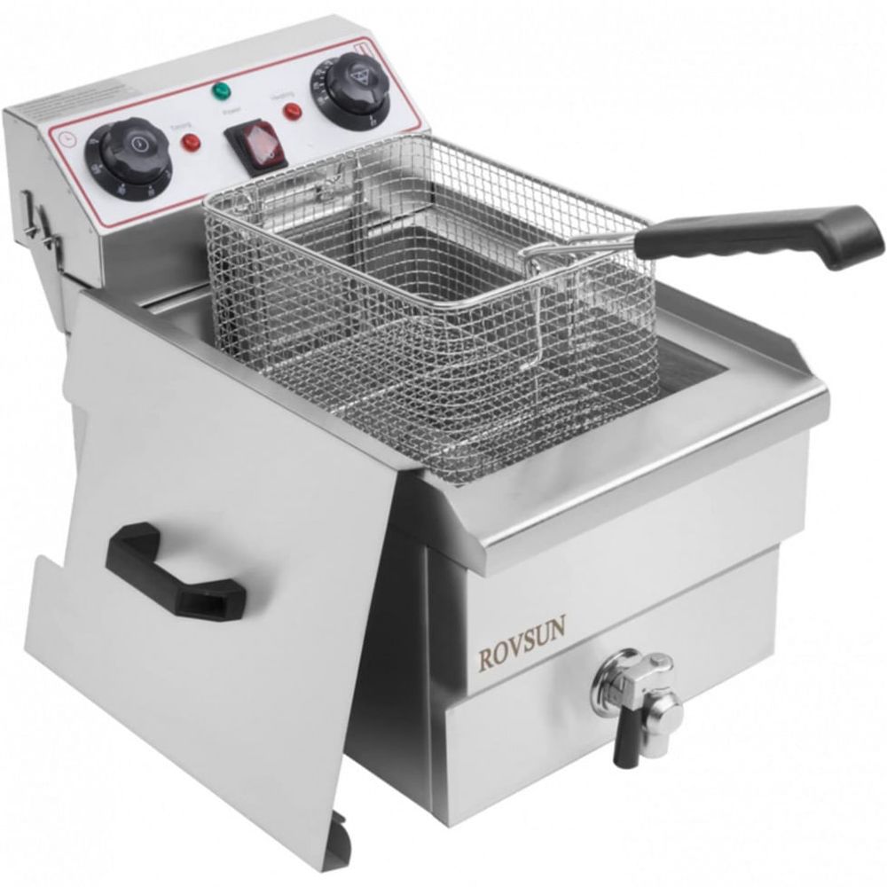 IDEAL PARA USO A fritadeira a óleo é adequada para uso e é aplicável em ocasiões como restaurantes, supers, festas, etc. Ideal para fazer vários alimentos fritos, como batatas fritas, anéis de cebola, frango frito, etc. NOTA Sugere se usar uma tomada de pelo menos 16A.