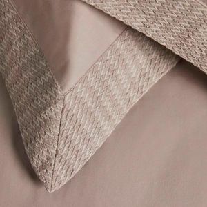 O bordado em duas cores da cama Scarpe aplicado na aba, é a representação dos caminhos de Bérgamo, suas ruas e texturas. Versátil, se apresenta em uma versão contemporânea e outra clássica, denotando autenticidade. Fronha com 3 abas bordadas