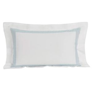 A Fronha Trussardi Rivus combina a elegância rústica do linho com a maciez indispensável do algodão, apresentando um acabamento detalhado em branco e azul que transforma instantaneamente a estética do seu enxoval. Sua composição altamente respirável garante um frescor excepcional durante toda a noite de sono.
