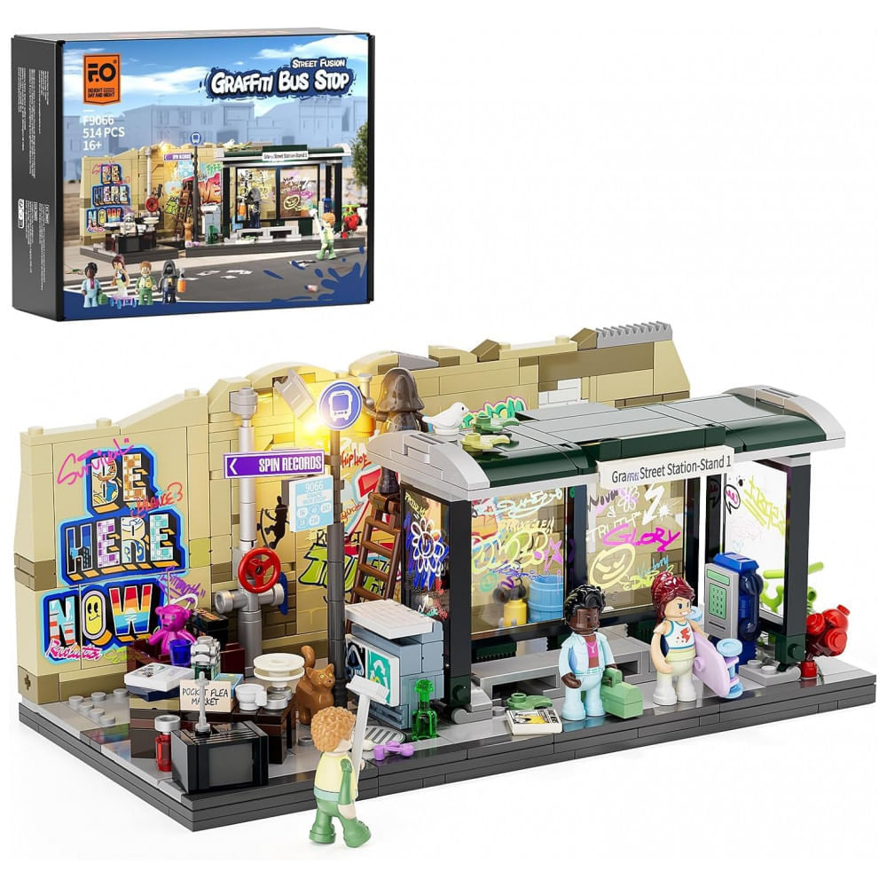Atenção: Todos os produtos elétricos são 110V e necessitam de adaptador para a tomada no formato Brasileiro. Conjunto de blocos de montar em plástico que representa um ponto de ônibus urbano inspirado em cenário de rua dos anos 1990, com abrigo, muro lateral, calçada e pequeno espaço de feira. A ambientação destaca elementos de cultura de rua, com grafites, lixeira tematizada, tampa de bueiro e jornais espalhados para compor uma cena urbana detalhada.? As peças impressas incluem murais de grafite em grande formato e ilustrações de animais estilizados, criando um painel visual de destaque no fundo do cenário. O conjunto traz minifiguras com visual de rua, como artista de grafite, usuária de skate, trabalhadora e passageira, permitindo montar diferentes interações no ponto de ônibus.? A construção é dividida em três módulos combináveis: módulo principal do ponto de ônibus, módulo do muro grafitado e módulo de feira de rua, que podem ser organizados em diferentes composições ou integrados a outros cenários urbanos. O produto é voltado para adolescentes e adultos, com foco em exposição em coleções de cidade e cultura de rua.?? O sistema de iluminação inclui dois pontos de LED com alimentação por bateria, posicionados no topo do abrigo e em um poste de luz com tonalidade amarela junto ao muro. A iluminação valoriza os grafites e a área de espera, reforçando o efeito de cenário noturno de ambiente urbano.? Ficha Técnica: Marca: Funwhole? Fabricante: Funwhole? Modelo: Graffiti Bus Stop F9066? Tema: Ponto de ônibus urbano com grafite e cena de rua? Faixa etária recomendada: Adulto / a partir de 16 anos? Material: Plástico? Quantidade de peças: 514 peças? Escala aproximada: 1:12? Tipo de bloco: Blocos de montar interligáveis? Estrutura: Abrigo de ônibus com muro lateral, calçada e módulo de feira de rua em três seções combináveis? Sistema de iluminação: 2 pontos de luz em LED com alimentação por bateria? Recursos visuais: Murais de grafite, peças impressas com animais e detalhes urbanos como lixeira e tampa de bueiro? Personagens inclusos: 4 minifiguras com visual de cultura de rua? Dimensões do produto montado (C x L x A): 25,6 cm x 12,8 cm x 12 cm? Dimensões da embalagem (C x L x A): 25,6 cm x 12,8 cm x 12 cm? Peso do produto: 0,94 kg? Peso do pacote (produto + embalagem): 1,1 kg? Voltagem: Não se aplica? Conteúdo da caixa: Blocos de montar, dois conjuntos de iluminação LED, folhas de adesivos extras e manual de instruções? Manual do usuário: Inglês?