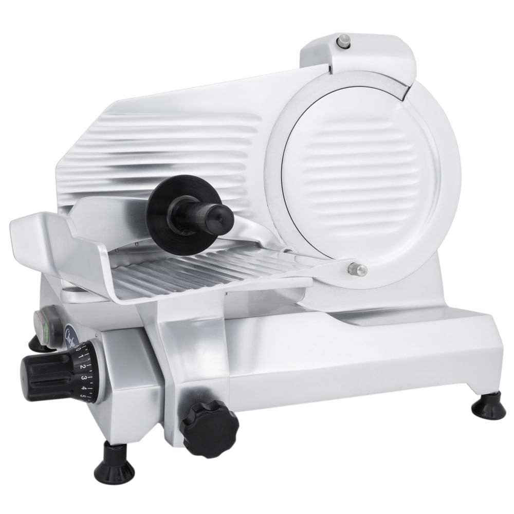 Atenção: Todos os produtos elétricos são 110V e necessitam de adaptador para a tomada no formato Brasileiro. Construída em alumínio anodizado, a Globe Chefmate C9 é uma fatiadora compacta ideal para operações pequenas, como cafeterias, que precisam fatiar ocasionalmente e possuem espaço limitado no balcão. Com motor de 1/4 hp acionado por correia e lâmina de 9 polegadas, ela pode fatiar cerca de 30 minutos de carne e vegetais por dia. O design compacto economiza espaço no balcão e acomoda produtos de até 18,5 x 16 x 16,5 cm. Com controle preciso de espessura e lâmina de 25,4 cm afiada, corta facilmente produtos protegida por anel de faca para segurança dos usuários. Inclui amolador removível e fácil de limpar para manter a lâmina afiada. Especificações: Peso do Pacote: 16,1 quilogramas, Amperes: 2 Amperes, Profundidade: 42,22 centímetros, Altura: 36,2 centímetros, Hertz: 60 Hz, Dimensões: 42,54 x 42,22 x 36,2, Fase: 1 Fase, Peso do Envio: 16,1 quilogramas, Voltagem: 110 Volts, Potência: 230 Watts, Largura: 42,54 centímetros Cor:Prata