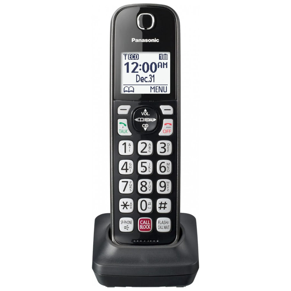 Atenção: Todos os produtos elétricos são 110V e necessitam de adaptador para a tomada no formato Brasileiro. O handset adicional Panasonic para telefone sem fio opera com tecnologia DECT 6.0, compatível exclusivamente com sistemas KX-TGD81x e KX-TGD83x (vendidos separadamente), expandindo o número de handsets no sistema fixo residencial. Inclui bloqueio avançado automatizado de robocalls, bloqueio de telemarketing para chamadas anunciadas e capacidade para até 1.000 números adicionais via botão dedicado de um toque. O alerta contra golpes de um toque exibe tela de confirmação ao retornar chamadas curtas suspeitas.? Possui viva-voz full duplex para uso mãos-livres e intercomunicador entre handsets e base, com teclado iluminado de caracteres grandes para navegação intuitiva no escuro e discagem rápida de 9 números favoritos. Suporta conferência de 2 vias em operação de linha única, com identificação de chamadas (Caller ID) e autonomia de até 10 horas em conversação e 120 horas em standby, alimentado por 2 baterias AAA recarregáveis incluídas. O design em plástico metálico preto permite montagem na parede, com suporte de carga, capa protetora e clipe de cinto para portabilidade. Fabricado pela Panasonic com herança japonesa em conectividade confiável. Ficha técnica Tecnologia: DECT 6.0? Compatibilidade: Sistemas KX-TGD81x e KX-TGD83x (base obrigatória)? Bloqueio de chamadas: Automatizado robocalls + telemarketing + 1.000 manuais? Alerta golpe um toque: Sim, tela de confirmação? Viva-voz: Full duplex? Discagem rápida: 9 números? Teclado: Iluminado com caracteres grandes? Tempo de conversação: Até 10 horas? Tempo standby: Até 120 horas? Conferência: 2 vias? Operação: Linha única? Identificação de chamadas: Sim? Alimentação: 2 baterias AAA recarregáveis (inclusas)? Cor: Preto metálico? Material: Plástico resistente? Fabricante: Panasonic? UPC: 885170412019? Peso:0,5 kg