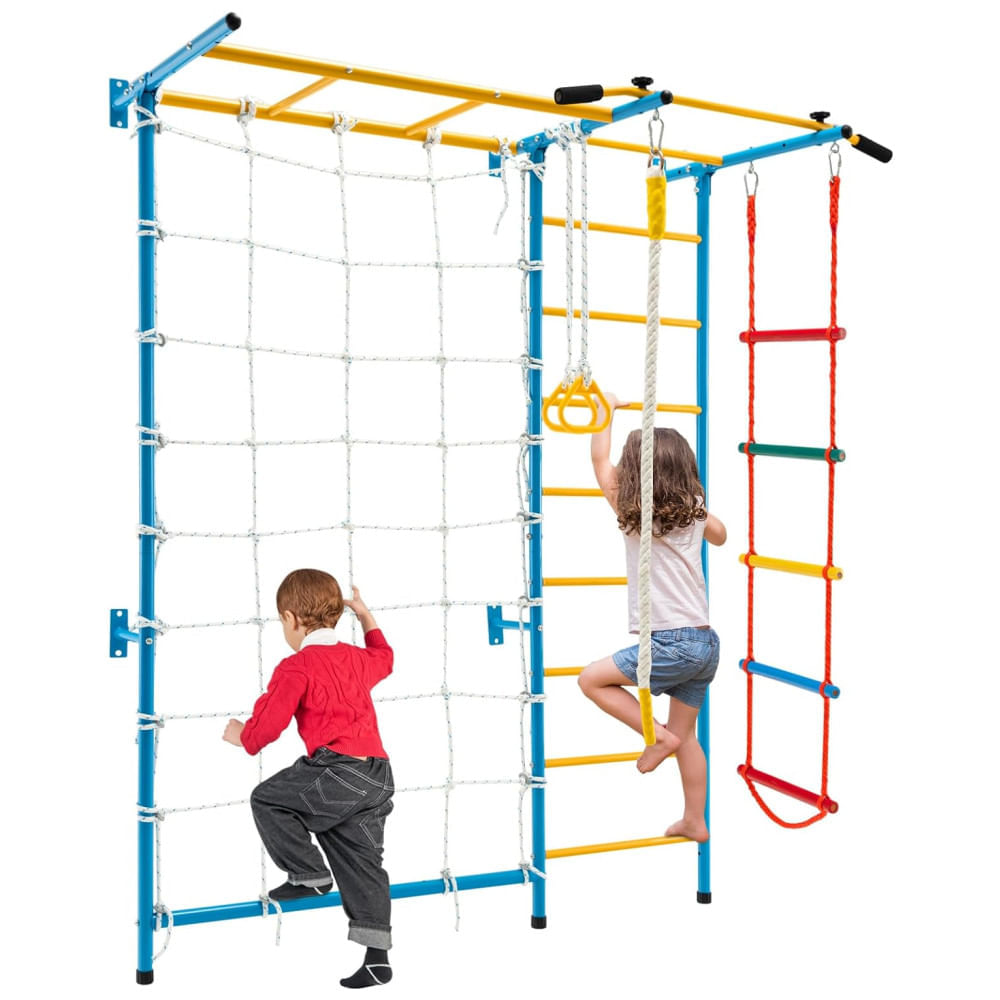Atenção: Todos os produtos elétricos são 110V e necessitam de adaptador para a tomada no formato Brasileiro. Libere o aventureiro interior do seu filho com o conjunto de ginástica de parede 7 em 1! Transforme qualquer parede em um playground épico com escada de parede, corda, rede de escalada, barra de elevação, escada de corda, barras de macaco e argolas de elevação. Além disso, feito com metal resistente e revestido a pó, este ginásio indoor garante diversão interminável e máxima segurança para seu pequeno. Observe seu filho desenvolver habilidades motoras essenciais, equilíbrio e coordenação enquanto se diverte com a escada sueca. A instalação é simples com 12 parafusos de expansão, permitindo que você o monte em qualquer parede sólida. Adquira o seu agora e deixe a imaginação do seu filho alcançar novas alturas! Características: conjunto de ginástica de parede oferece diversão de escalada, balanço e pendurar; aço carbono sólido com revestimento em pó para excelente durabilidade; cordas com fivelas antideslizantes garantem segurança durante a brincadeira; alças revestidas de espuma para máximo conforto durante o exercício; design montado na parede economiza espaço e oferece resistência confiável; equipado com almofadas antiderrapantes para proteção do piso; ótima opção de presente para crianças acima de 3 anos. Especificações: Material: Aço Carbono, Madeira; Dimensão Total: 198 x 84 x 224 cm (C x L x A); Dimensões da Escada de Corda: 166 x 39,5 cm (C x L); Comprimento da Corda: 146 cm; Altura Mínima do Teto: 2,7 m; Capacidade de Peso da Barra de Elevação: 100 kg; Capacidade de Peso das Barras de Macaco: 100 kg; Capacidade de Peso da Rede de Escalada: 100 kg; Capacidade de Peso da Escada de Parede: 200 kg; Capacidade de Peso dos Demais Acessórios: 50 kg; Idade Recomendada: 3 anos; Peso Líquido: 30 kg. Inclui: 1 x Ginásio Indoor para Crianças; 1 x Guia do Usuário. Divirta-se sem fim com as crianças! Veja seus pequenos alcançando novas alturas e se divertindo com este conjunto de ginástica de parede! Este brinquedo de escalada para crianças transforma qualquer parede monótona em um playground emocionante e dinâmico com barra de elevação, escada de corda, barras de macaco e argolas de elevação! Construção Super Resistente e Segura: Feito de aço carbono revestido a pó e projetado com a segurança de seu filho em mente, nossas barras de parede oferecem uma experiência de brincadeira sólida e segura. Além disso, as cordas com fivelas podem evitar escorregões e acidentes de queda. Desbloqueie Habilidades Potenciais: Assista maravilhado enquanto as habilidades motoras, equilíbrio e coordenação de seu filho se elevam! O ginásio indoor oferece uma maneira divertida e envolvente para seus pequenos desenvolverem suas habilidades físicas, tudo enquanto se divertem! Configuração Rápida e Sem Estresse: Não precisa esperar para sempre, a escada sueca é rápida e fácil de instalar! Com 12 parafusos de expansão, o equipamento de escalada se encaixa firmemente em qualquer parede sólida. Certifique-se de que o teto tenha pelo menos 2,7 m de altura. PRECISA ser instalado em uma parede de alvenaria, NÃO em uma parede de gesso ou drywall. Design Pensado para Maratonas de Brincadeira: Projetado para resistir a horas infinitas de aventuras de escalada, a escada de parede é equipada com alças envoltas em espuma para garantir conforto. Além disso, os protetores de piso podem reduzir efetivamente riscos no chão. Especificações: Dimensões do produto: 198 x 84 x 224 centímetros, Peso do Item: 30 quilos, Idade recomendada pelo fabricante: 36 meses - 8 anos, Fabricante: HONEY JOY Cor:Multicolorido