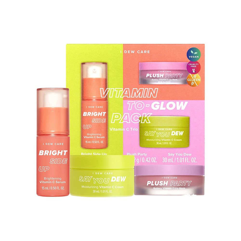 Produto importado dos Estados Unidos o prazo de entrega e de ate 25 dias uteis As importacoes sao oficiais atraves do Regime de Tributacao Simplificada da Receita Federal O preco inclui imposto de Importacao ICMS Frete Nacional Frete Internacional Servicos Alfandegarios e a intermediacao de cambio para pagamento no exterior O preco ja inclui todos os custos nao sera cobrado nenhum valor extra para o recebimento do produto ATENCAO Todos os produtos eletricos sao 110V e necessitam de adaptador para a tomada no formato brasileiro QUEM E I DEW CARE Cuidados com a pele serios e divertidos Criamos formulas divertidas que funcionam seriamente Kbeleza indutora de sorrisos para ela ele eles e todos Trio de produtos ricos em vitamina C composto por soro de tamanho de viagem Bright Side Up 15ml050 fl oz hidratante Say You Dew 30ml050 fl oz e mascara labial Plush Party 12g 042 oz para iluminar e hidratar a pele em movimento LADO BRILHANTE PARA CIMA A textura hidratante e de rapida absorcao cheia de vitamina C e niacinamida uniformiza o tom da pele e ajuda a pele a ficar mais iluminada e hidratada Desfrute do efeito clareador duplo da vitamina C e da niacinamida Uma textura umida e hidratante cheia de vitamina C e niacinamida espalha a umidade na pele para deixala hidratada e mais radiante Esta mascara labial rica e sem enxague prepara seu beicinho para todos os momentos de beijo gracas a uma mistura de manteiga de cacau extrato de flor de hibisco e vitamina C INGREDIENTES 7 derivado de vitamina C para melhorar o brilho da pele Bright Side Up 2 de niacinamida para uniformizar o tom da pele e iluminar a pele sem ressecar Say You Dew Manteiga de Cacau rica em antioxidantes para promover a elasticidade dos labios Plush Party COMO USAR Apos a limpeza aplique a quantidade adequada de Bright Side Up seguido de Say You Dew no rosto e bata suavemente para aumentar a absorcao Finalize a rotina aplicando Plush Party nos labios com a espatula RECOMENDADO PARA USAR COM Useo com o limpador Gentle Vibes da I DEW CARE para limpar suavemente a pele antes de aplicar os cuidados com a pele Vitamin to Glow Pack e formulado com IDC Clean Standards Formulado sem parabenos sulfatos e ftalatos Embalado com amor em embalagens certificadas pelo FSC