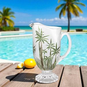 Fabricada em cristal ecológico, esta jarra é uma escolha consciente que não compromete a beleza e a qualidade. O grande diferencial é o seu acabamento "Sprayed", um degradê sutil que se funde ao motivo "Palm Tree", criando um efeito visual moderno e tropical que captura a luz e encanta os olhos. A capacidade de 1,5 litro é prática para a maioria das mesas, garantindo que suas bebidas estejam sempre à mão.