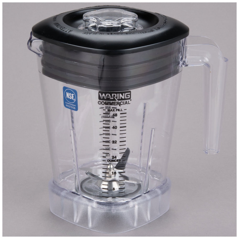 Atenção: Todos os produtos elétricos são 110V e necessitam de adaptador para a tomada no formato Brasileiro. A jarra Waring CAC93X de 1,42 L em copoliéster transparente integra-se aos liquidificadores comerciais da série MX, facilitando preparos de smoothies, bebidas congeladas, pastas espessas, sobremesas e molhos em ambientes de cozinha profissional ou bar. Seu design stackable otimiza o armazenamento em espaços compactos, com tampa, lâmina e bico anti-gotejamento para operação prática e redução de derramamentos durante o uso. Construída em copoliéster transparente, permite visualização do processo de mistura e inclui marcas de medição graduadas para precisão em receitas. Tecnologia stackable permite empilhamento eficiente, economizando espaço em cozinhas comerciais. Funcionalidades incluem lâmina para trituração de ingredientes variados e bico pour-spout sem gotejamento. Compatível exclusivamente com liquidificadores Waring MX series. Cuidados: lavagem manual recomendada; livre de BPA; certificado NSF para uso comercial. Ficha Técnica • Capacidade da jarra: 1,42 L (48 oz).? • Dimensões da jarra: não especificadas (ver manual).? • Peso do produto: 1,46 kg (3,22 lb).? • Peso com embalagem: 3 kg • Material: copoliéster transparente.? • Características: stackable, marcas de medição, livre de BPA, certificado NSF, fabricado nos EUA, lavagem manual.? • Fonte de alimentação: compatível com liquidificadores Waring MX series, 120V.? • Conteúdo da caixa: 1 jarra com tampa e lâmina.? • Manual do usuário: inglês.