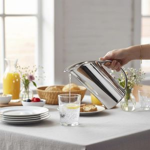 Com capacidade de 1,3 litro, esta jarra é ideal para servir água, sucos, ou coquetéis com grande estilo, atendendo a uma mesa completa. O bico projetado ergonomicamente garante um serviço preciso e sem pingos, e a alça robusta oferece segurança no manuseio. É indispensável para jantares formais onde a apresentação à mesa é fundamental.