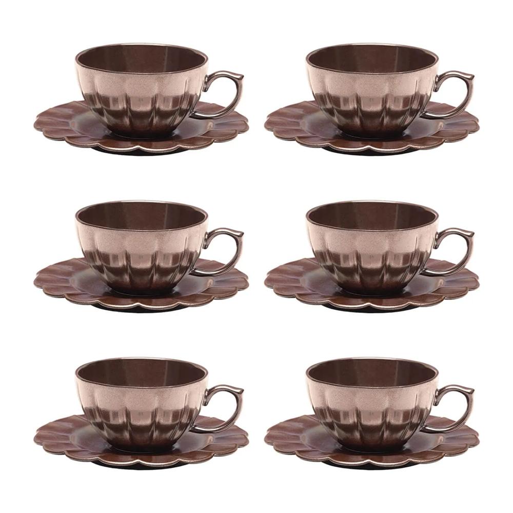 Conteúdo da Embalagem: 6 Xícaras de Chá (220 ml de capacidade) e 6 Pires (16 cm de diâmetro)