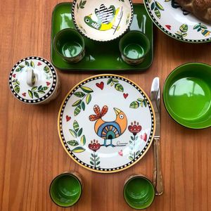 O Jogo de Copos para Espresso Egan Cocorico Verde é a escolha ideal para quem busca serenidade e charme no seu ritual matinal ou após o almoço. Fabricados em porcelana de excelente procedência, estes copos de 90ml destacam-se pela tonalidade verde suave e pela arte que evoca a tranquilidade e a tradição do campo europeu. A espessura da porcelana italiana é projetada para preservar o aroma e a temperatura do café, proporcionando uma experiência de degustação refinada e visualmente encantadora.
