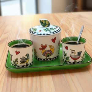 Este jogo une a funcionalidade do cotidiano com a estética "country chic" moderna, sendo indispensável para compor bandejas de café ou mesas de brunch com total distinção. O acabamento vitrificado da marca assegura que as peças não absorvam manchas de cafeína, mantendo a brancura interna e o brilho externo impecáveis por anos. É o detalhe que faltava para quem valoriza a hospitalidade em pequena escala, transformando um simples gesto em uma demonstração de bom gosto e carinho com o serviço de mesa posta.