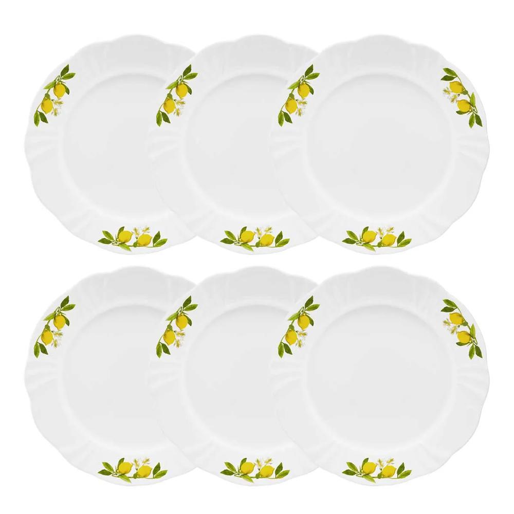 Apresente suas refeições com a beleza da Itália com o Jogo de 6 Pratos Rasos Soleil Limoni. A estampa de limão siciliano, tema clássico na culinária e cerâmica italianas, resgata a história da porcelana e adiciona um toque de charme e alegria à sua mesa.
