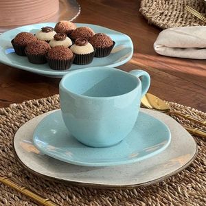 Sirva chá ou café com a beleza do litoral australiano com o Jogo de 6 Xícaras de Chá Ryo Blue Bay. Inspirada na cidade costeira de Blue Bay, esta coleção captura a mistura de tons claros da areia com a cor azul profunda do oceano. O pontilhismo da decoração é o resultado de um processo manual, garantindo que cada xícara e pires tenham um desenho exclusivo e autêntico.