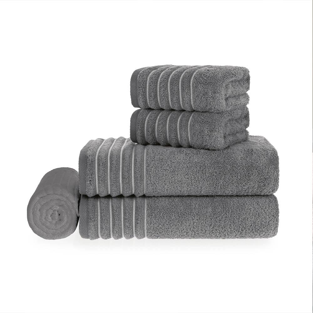 Jogo de Banho Trussardi Palladio 5 Peças 86cmx1,50m em algodão Ardósia/Branco