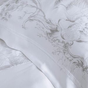 Acabamento: Estamparia Digital; Tecido sanforizado e mercerizado; Fronha com 4 abas e estampa dimensionada com ponto ajour; Arte desenvolvida à mão na Itália; Confeccionado em fibra de Bambu; Toque acetinado