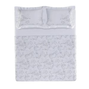 Composição: 1 - Lençol de Cima: 2,80m x 2,80m; 1 - Lençol de Baixo com Elástico: 1,93m x 2,03m x 45cm; 2 - Fronha: 50cm x 70cm