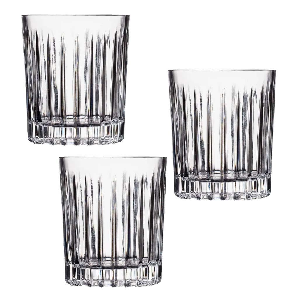 Design sofisticado e elegante com textura canelada que reflete a luz de forma sofisticada, tornando-o uma peça de destaque na mesa ou no bar. Material de Feito de vidro grosso e resistente, oferece durabilidade e segurança, reduzindo o risco de quebras e lascas.