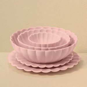 A linha Flora apresenta pratos de espessura finíssima com um design de aba larga, decorada com vincos em alto-relevo inspirados nas pétalas das flores. A decoração Dália exibe uma linda tonalidade de Rosa suave, inspirada em tons pastéis que remetem à riqueza botânica do Brasil.