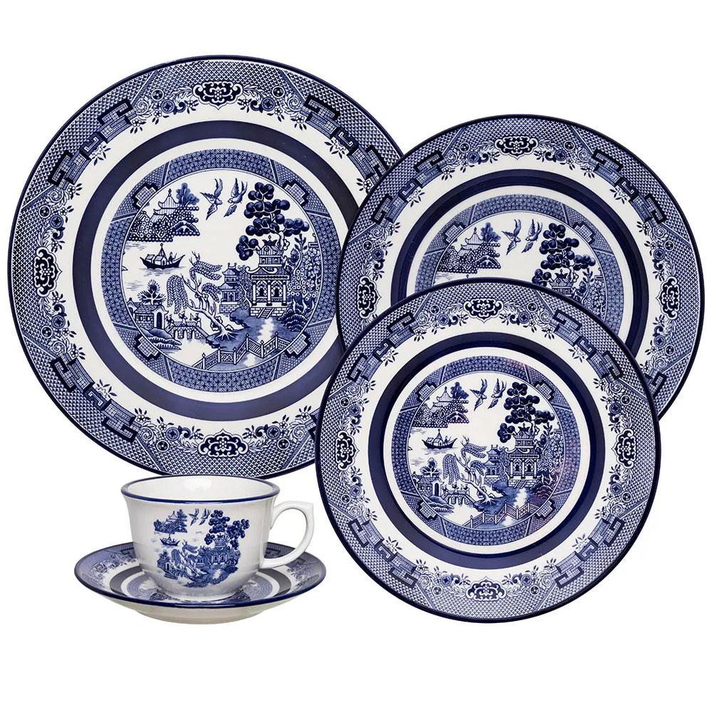 Jogo de Jantar Chá 30 Peças Porcelana Oxford Flamingo Blue Willow: Clássico