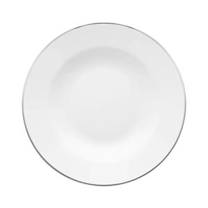 Este conjunto de porcelana aposta na beleza clássica. O segredo da nobreza está nos detalhes: as peças possuem filetes em prata pintados à mão, conferindo um acabamento artesanal e um brilho delicado.