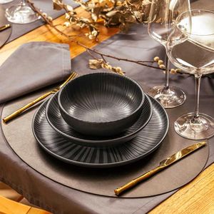Traga a força da natureza para sua mesa com o Aparelho de Jantar e Chá Flat Ônix. Inspirada no design biofílico, que busca conectar pessoas e produtos à natureza, esta coleção de cerâmica exalta a beleza da pedra ônix com um acabamento acetinado na cor preta. Linhas em alto-relevo partem do centro dos pratos, simbolizando as ramificações presentes na pedra, que é conhecida por sua proteção e por afastar energias negativas.