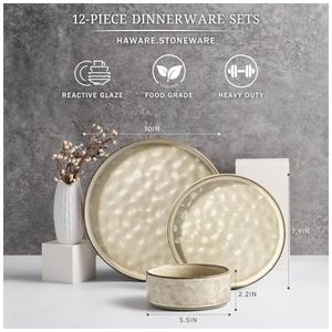 Atenção: Todos os produtos elétricos são 110V e necessitam de adaptador para a tomada no formato Brasileiro. Surpreenda-se com o Jogo de Jantar HaWare, inspirado nos planetas do cosmos. Com um design minimalista e superfície ondulada, essas peças trazem elegância para suas refeições. Feito em cerâmica de alta qualidade, livre de chumbo e cádmio, seguro para sua saúde. Resistente a riscos e quebras, pode ser usado diariamente com tranquilidade. Além disso, seu formato permite empilhamento eficiente, economizando espaço na sua cozinha. Versátil e elegante, é perfeito para uso diário, celebrações especiais e presente para amigos e familiares. Especificações: Cor: Saturn Khaki, Padrão: Sólido, Nome da Coleção: Série COSMOS, Tipo de Acabamento: Esmalte Reativo, Instruções de Cuidado com o Produto: Lava-louças e Forno Seguros, Tipo de Material Livre de: Chumbo, É Próprio para Micro-ondas: Sim, Fabricante: HaWare, Dimensões do Pacote: 45,01 x 32,51 x 18,59 centímetros, Peso do Item: 8,76 quilogramas, Número do Modelo: 03