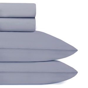 Jogo de lençol Domani DMI casal 180 fios 100% algodão Composição: 01 lençol de cima 2,40mx2,00m 01 lençol de baixo com elástico 1,90mx1,40cmx40cm 02 fronhas 50x70cm azul anil