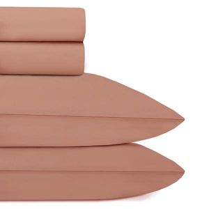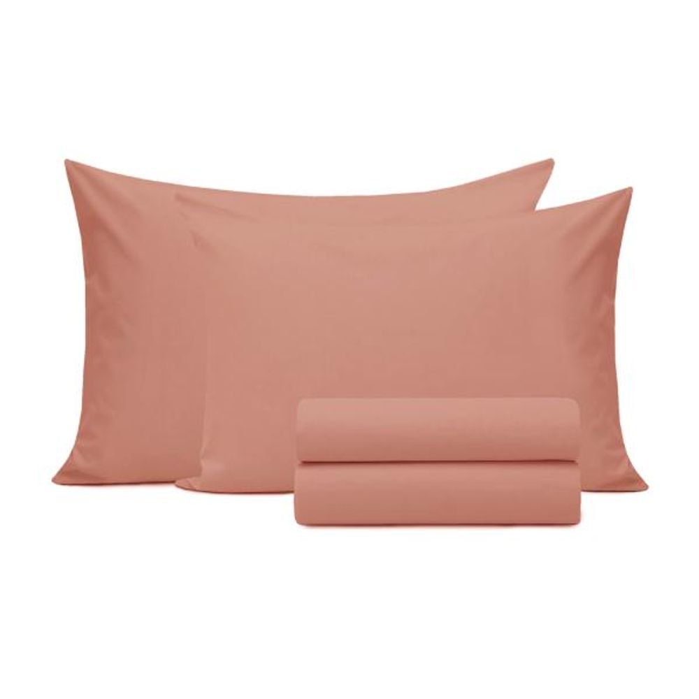 Jogo de lençol Domani DMI queen 180 fios 100% algodão Composição: 01 lençol de cima 2,50mx2,40m 01 lençol de baixo com elástico 2,00mx1,60cmx30cm 02 fronhas 50x70cm coral