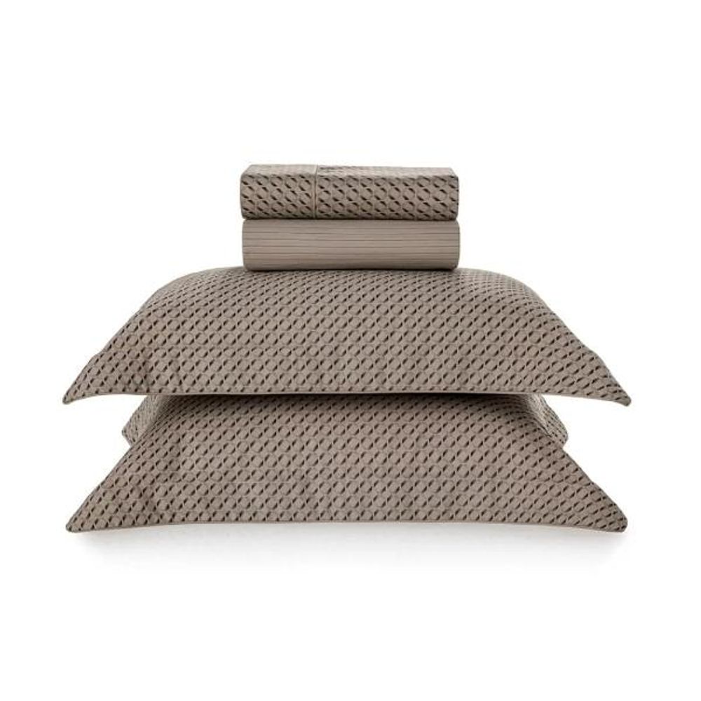 A cama Bartolomeo, inspirada na geometria da Capella Colleoni, apresenta um estilo contemporâneo e elegante em sua simplicidade, ao mesmo tempo em que é inovadora e disruptiva em sua expressão geométrica. Com desenho único em termos de cor e forma, ela confere originalidade e estilo ao cetim de algodão 300 fios.