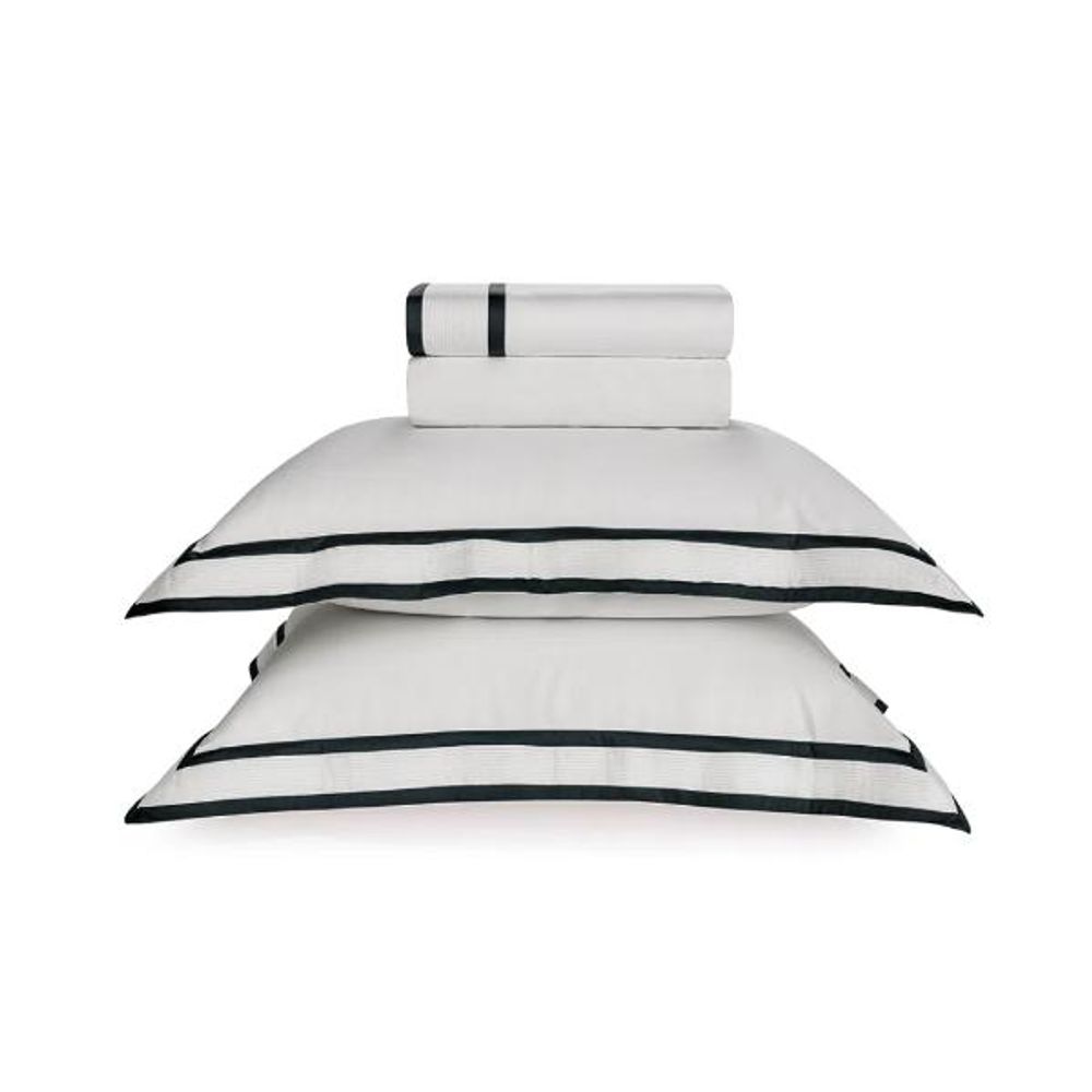 Jogo de lençol Trussardi Castello 300 fios 100% Algodão Queen Branco/Nero