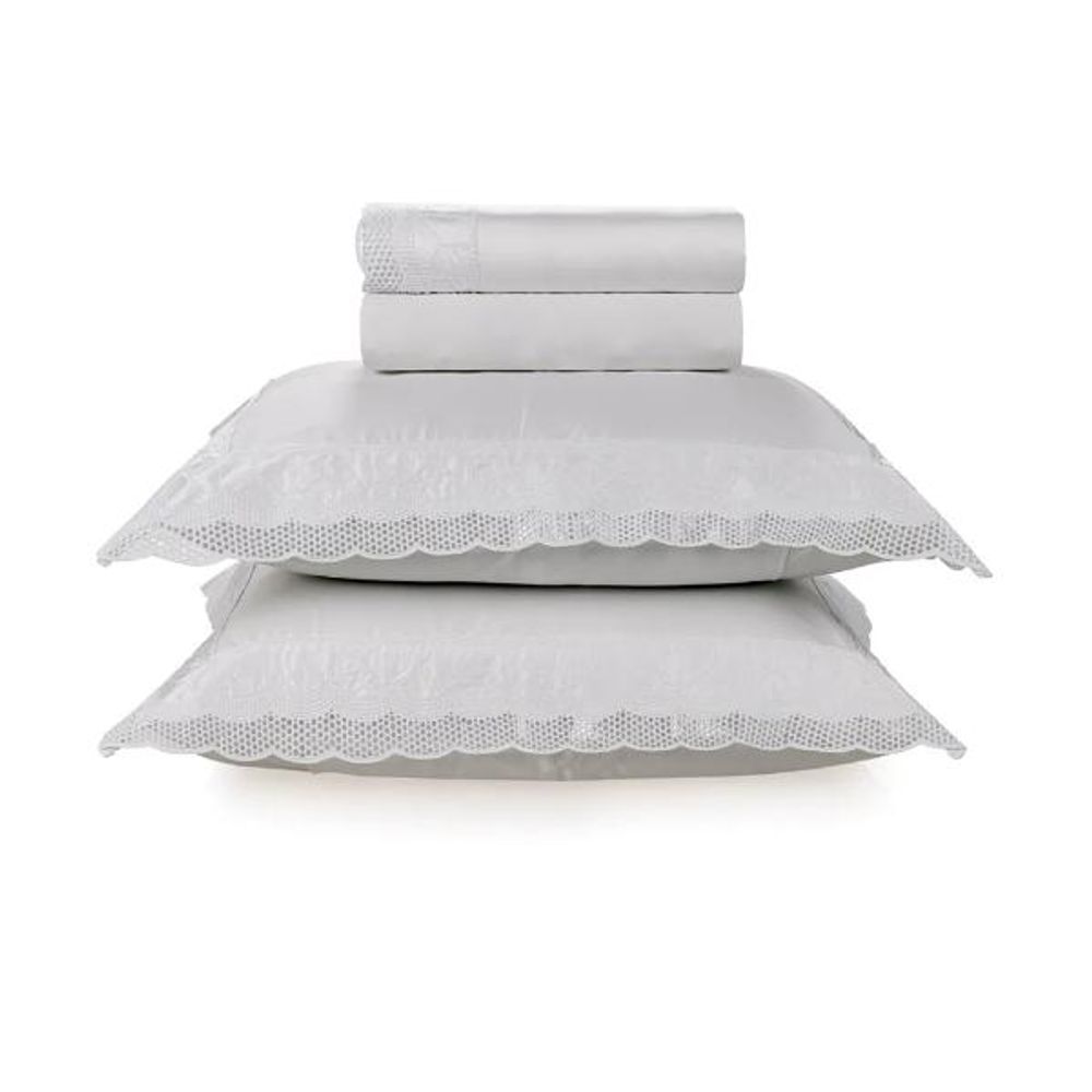 Jogo de lençol Trussardi Cristina 600 fios 100% Algodão Queen Branco/Branco