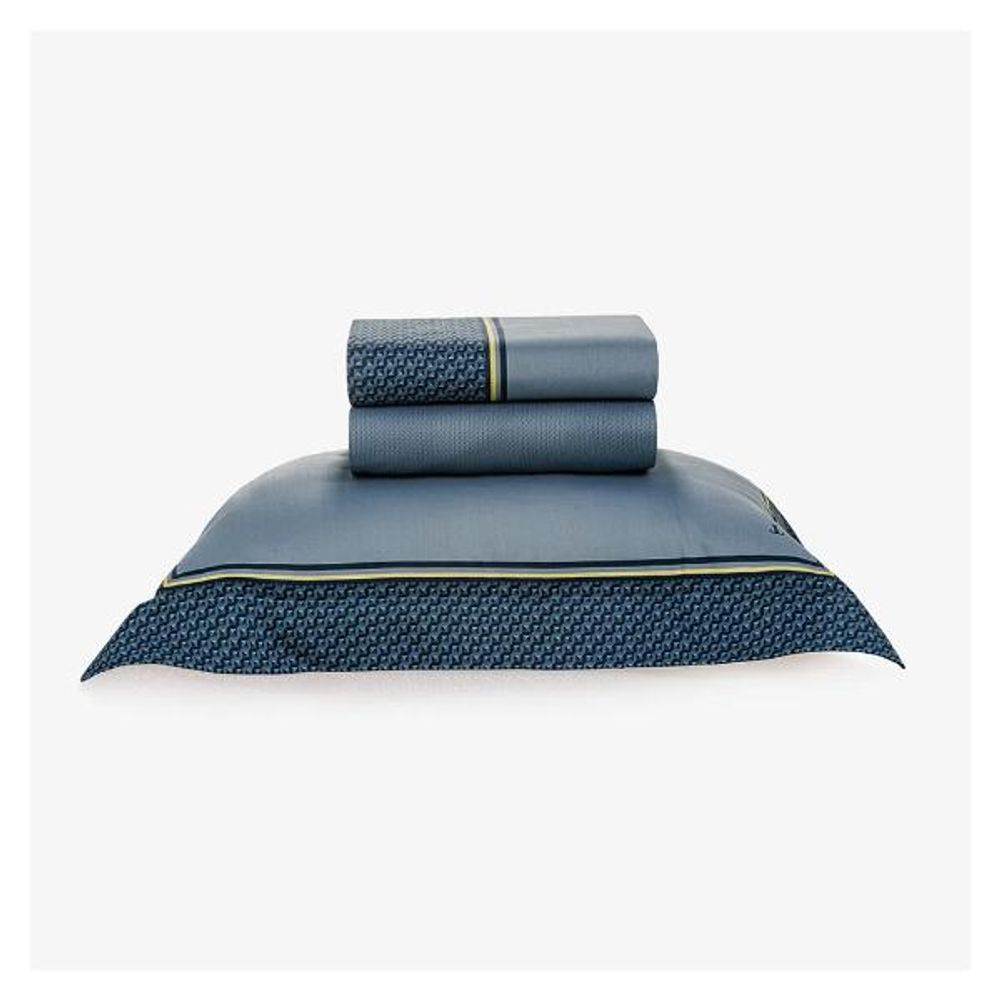 Um azul nada básico que faz lembrar os azulejos antigos dos casarões e palácios italianos. Contrastando o padrão de forma, uma faixa vibrante que remete ao tom do limão siciliano, trazendo no ar contemporêneo sem perder a tradição. A Cama Monte Solaro é uma experiência de designe reconfortante. Diferênciais: Fronhas com estampa dimensionadas e 3 abas. Lençol estampado com elástico. Acabamento: Tecido mercerizado. Composição: Cetim 300 fios 100% Algodão Egípcio