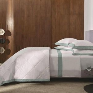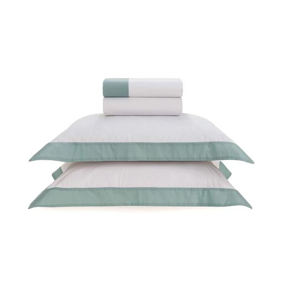 Jogo de lençol Trussardi Olga 200 fios 100% Algodão Casal Branco/Acqua