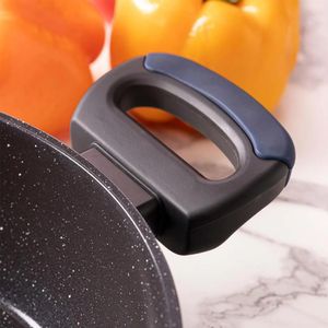 As panelas, feitas de alumínio forjado, são leves e proporcionam uma distribuição de calor uniforme. Os cabos com revestimento Soft Touch oferecem mais segurança e conforto no manuseio. O jogo inclui 1 frigideira de 22 cm, 1 caçarola de 22 cm, 1 caçarola de 24 cm, 1 panela de 20 cm e 1 panela de 18 cm, atendendo a todas as suas necessidades na cozinha.
