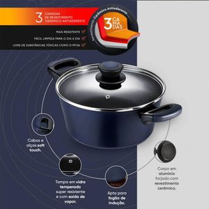 Material: Alumínio forjado (corpo), Cerâmica (revestimento), Silicone (cabos), Vidro temperado (tampas)