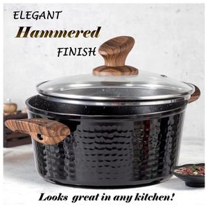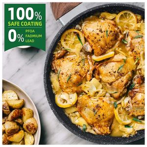 Conjunto de panelas e frigideiras antiaderentes Ao comprar utensílios de cozinha, uma das coisas importantes são os recursos antiaderentes. O revestimento de granito faz um bom trabalho para evitar que os alimentos grudem. Além disso, você poderá preparar refeições mais saudáveis para sua família, já que não precisará usar tanto óleo. Você pode cozinhar molho de tomate com segurança em panelas de granito, o sabor e o cheiro de sua comida não mudarão, mesmo se você usar ingredientes ácidos ou com cheiro forte.