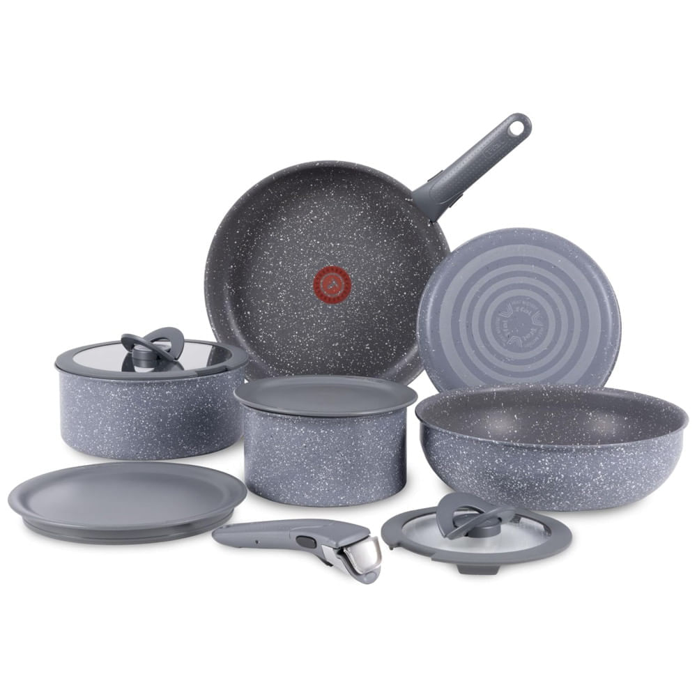 Desempenho Superior Antiaderente: O revestimento antiaderente Granite Titanium garante que os alimentos não grudem nem queimem, enquanto a tecnologia Thermo-Spot indica quando as panelas estão devidamente pré-aquecidas, tornando o cozimento suave e agradável.