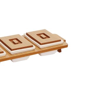 Jogo de petisqueiras quadradas em cerâmica com suporte em MDF L'Hermitage Santorini 3 peças