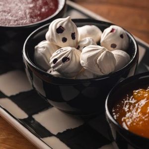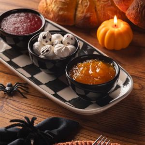 O conjunto é composto por uma travessa retangular (que serve como apoio e facilita o transporte) e três tigelas redondas (ideais para molhos, patês e acompanhamentos).
