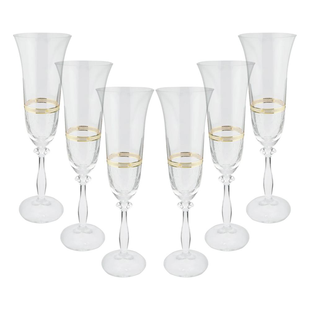 Ideal para brindar com elegância, o jogo de taças para champanhe Angela Decorada traz sofisticação em cada detalhe. O acabamento com friso dourado (gold rim) valoriza o design refinado das peças, enquanto o cristal ecológico oferece brilho, leveza e durabilidade, aliado à consciência ambiental.