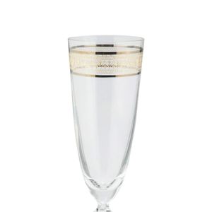 Um toque de requinte para brindes inesquecíveis. As taças da linha Brocade combinam o brilho do cristal ecológico com detalhes luxuosos em friso dourado e borda platinum rim, criando uma atmosfera de sofisticação para ocasiões especiais.