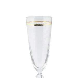 Com design clássico e acabamento gold rim, as taças para champanhe da linha Elizabeth Decorada transformam qualquer brinde em um momento de requinte. Fabricadas em cristal ecológico, são ideais para compor mesas elegantes com brilho, leveza e sofisticação.