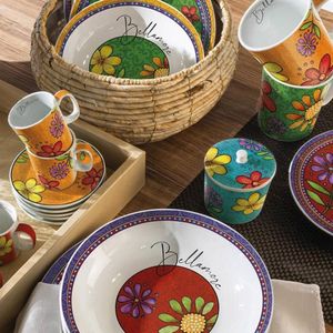 Delicado e encantador, o jogo Bellamore traz um toque retrô e floral à mesa do café. Produzido em porcelana de alta qualidade, combina estética e durabilidade para o uso diário ou ocasiões especiais. A tonalidade amarela e o padrão floral destacam-se com charme e leveza.