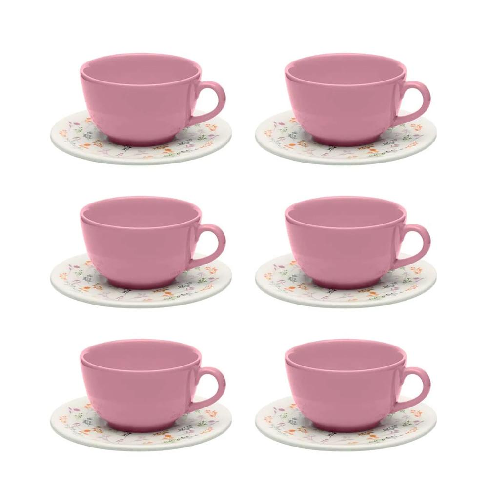Conteúdo da Embalagem: 6 Xícaras Grandes (200 ml) com 6 Pires.
