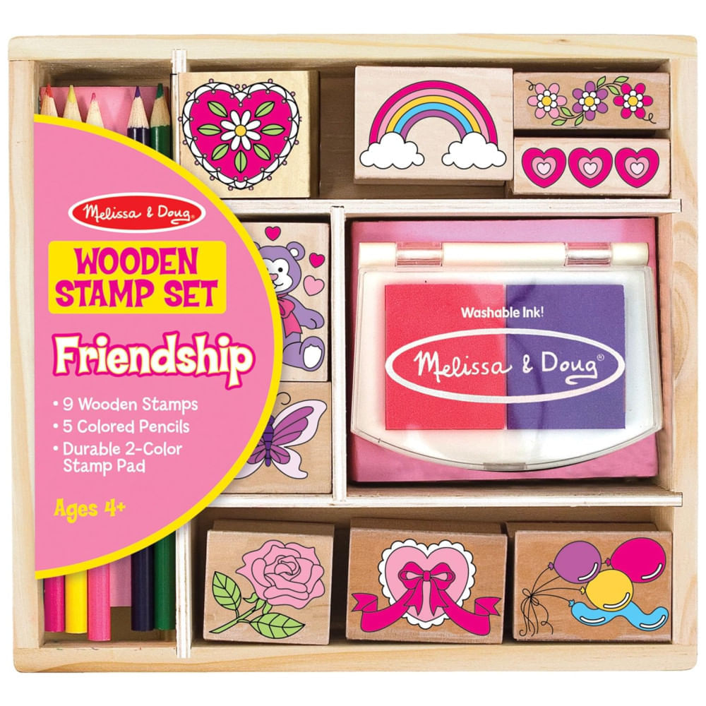 Atenção: Todos os produtos elétricos são 110V e necessitam de adaptador para a tomada no formato Brasileiro. Este conjunto de arte contém nove selos, um bloco de tinta de duas cores e cinco lápis de cor, todos convenientemente armazenados em uma caixa de madeira resistente. Com imagens de tema de amizade, incluindo borboletas, arco íris, ursinhos de pelúcia, vários corações e flores e um buquê de balões, as crianças podem carimbar e desenhar quantas vezes quiserem. As peças são guardadas ordenadamente na caixa de armazenamento de madeira com tampa transparente, facilitando a organização.
