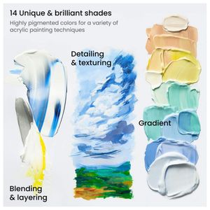 Pigmentos ricos e vívidos seu kit de tinta acrílica premium apresenta cores suaves e altamente pigmentadas para produzir tons verdadeiros e consistentes. Ideal para pintura em tela, essas cores não desbotam com o tempo.